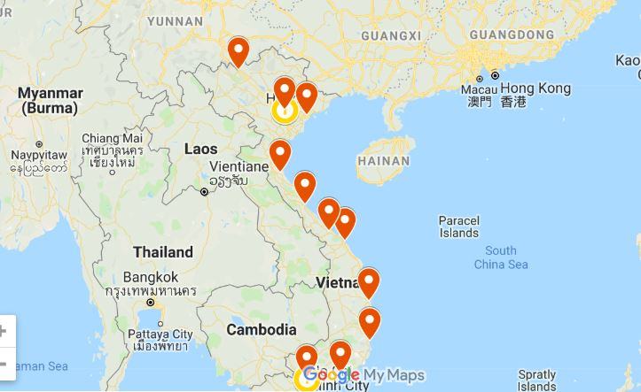 An Giang,Bà Rịa-Vũng Tàu, Bạc Liêu, Bắc Kạn, Bắc Giang,Bắc Ninh, Bến Tre, Bình Dương, Bình Định, Bình Phước, Bình Thuận, Cà Mau, Cao Bằng, Cần Thơ (TP),Đà Nẵng (TP),Đắk Lắk,Đắk Nông,Điện Biên, Đồng Nai, Đồng Tháp, Gia Lai, Hà Giang, Hà Nam, Hà Nội (TP), Hà Tây, Hà Tĩnh,Hải Dương, Hải Phòng (TP),Hòa Bình, Hồ Chí Minh (TP), Hậu Giang, Hưng Yên, Khánh Hòa, Kiên Giang, Kon Tum,Lai Châu, Lào Cai, Lạng Sơn,Lâm Đồng, Long An, Nam Định, Nghệ An, Ninh Bình,Ninh Thuận,Phú Thọ,Phú Yên,Quảng Bình, Quảng Nam,Quảng Ngãi,Quảng Ninh, Quảng Trị, Sóc Trăng,Sơn La, Tây Ninh, Thái Bình,Thái Nguyên,Thanh Hóa,Thừa Thiên – Huế,Tiền Giang,Tuyên Quang, Vĩnh Long, Vĩnh Phúc,Yên Bái